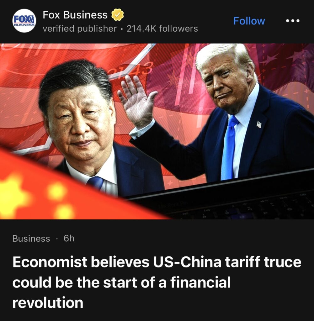 1。据Fox Business报道,经济学家认为中美关税休战可能是金融革命的开始。