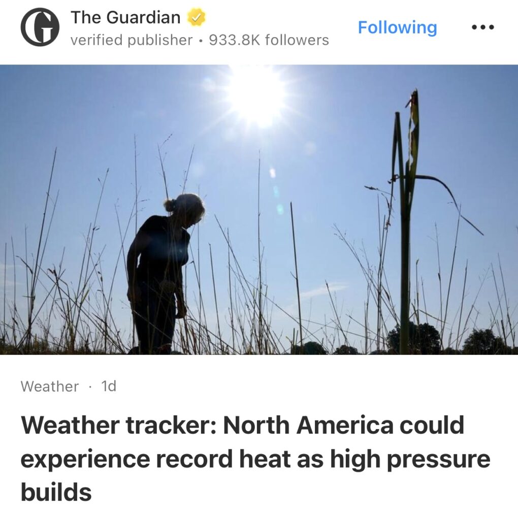 5。据The Guardian报道,天气追踪:随着高压增强,北美可能经历创纪录高温。