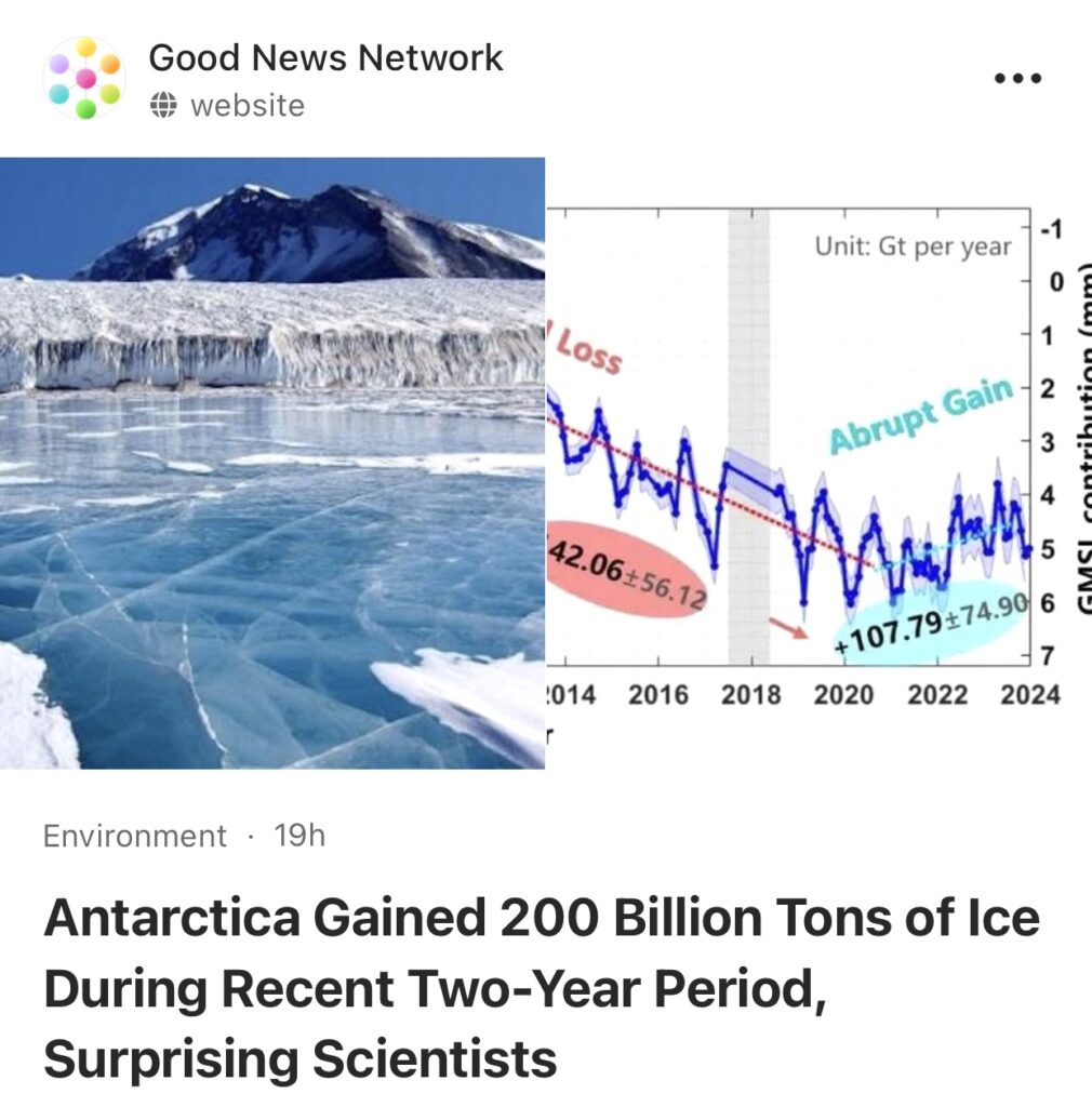 10。据Goodnewsnetwork 报道,南极洲近两年新增冰量达2000亿吨,令科学家惊讶。