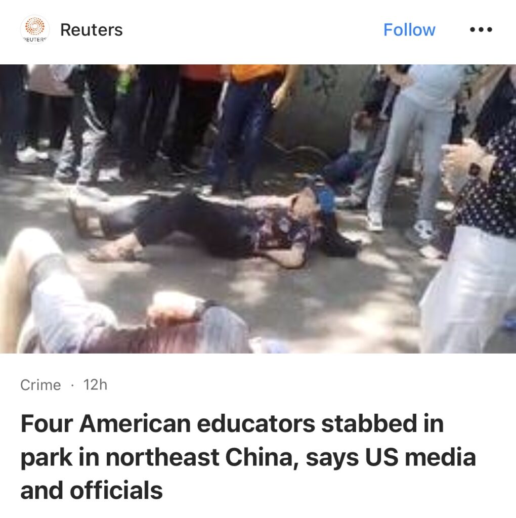 1。据美国军事新闻报道,中国称涉及四名美国教师在公园散步时被刺伤事件,不应影响两国之间的关系。外交部发言人林坚周二表示:“我们相信这起孤立事件不会干扰两国正常的人文交流。”中国“将继续采取相关措施保护外国人的安全”。