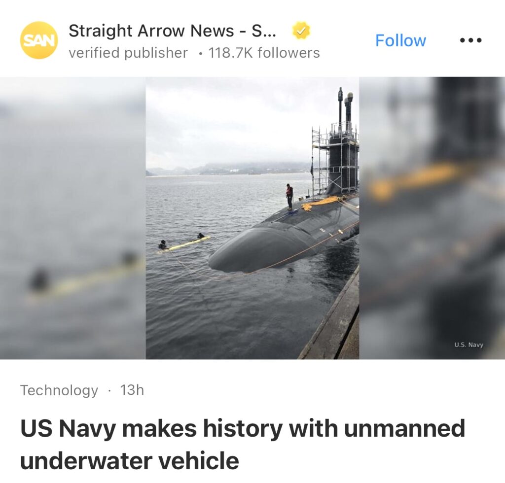 11。据Straight Arrow News报道,美国海军在欧洲海域执行了一项史无前例的隐身任务,成功从一艘水下潜艇发射并回收了一架无人潜航器(UUV),整个过程没有一名潜水员下水。此次行动由弗吉尼亚级快速攻击潜艇“特拉华号”(USS Delaware,SSN 791)执行,标志着美国海军首次利用前沿部署鱼雷管发射和回收自主式UUV,以完成战术目标。