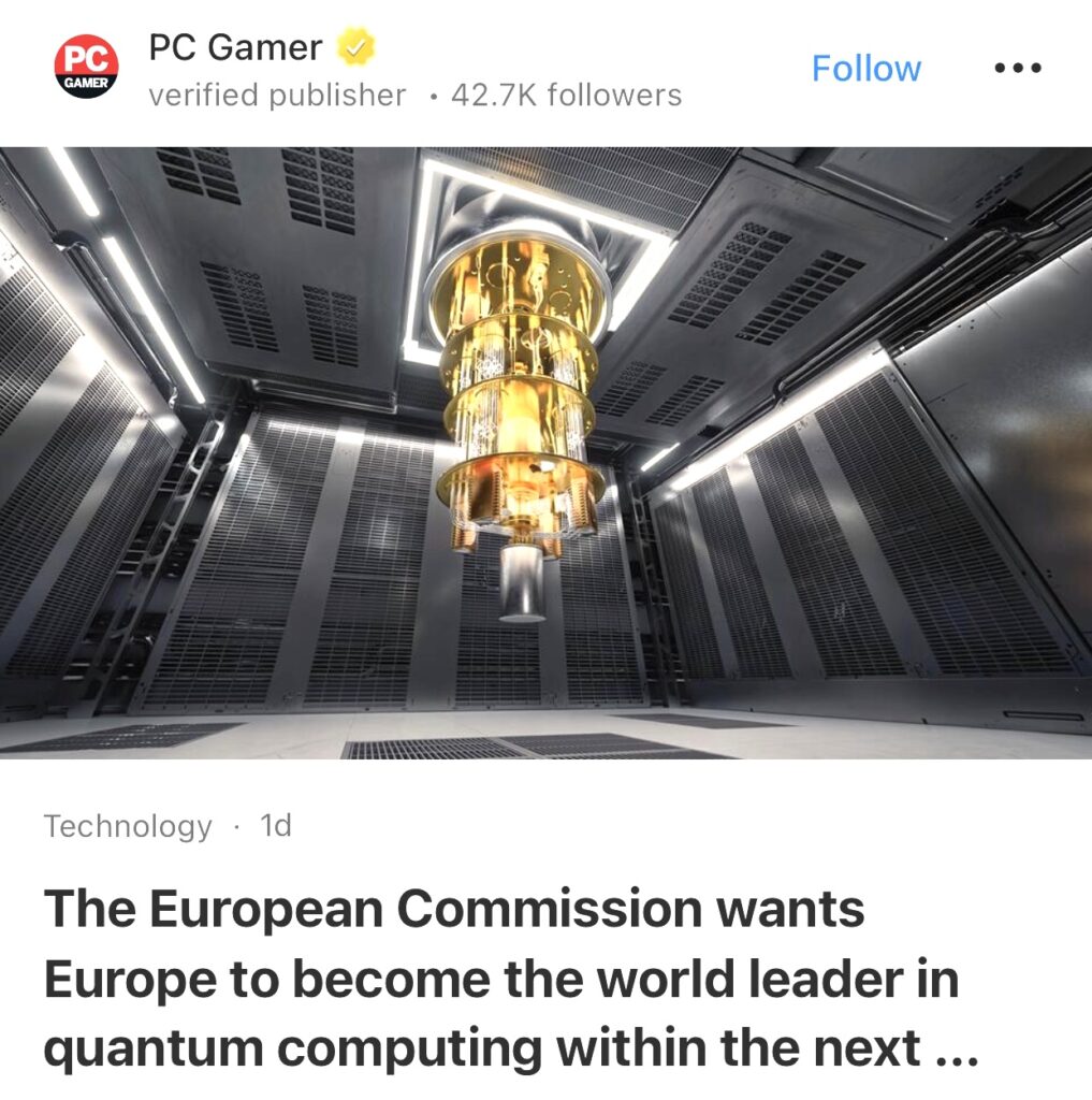 6。据PC Gamer报道,欧盟委员会希望欧洲在未来五年内成为量子计算领域的世界领先者。
