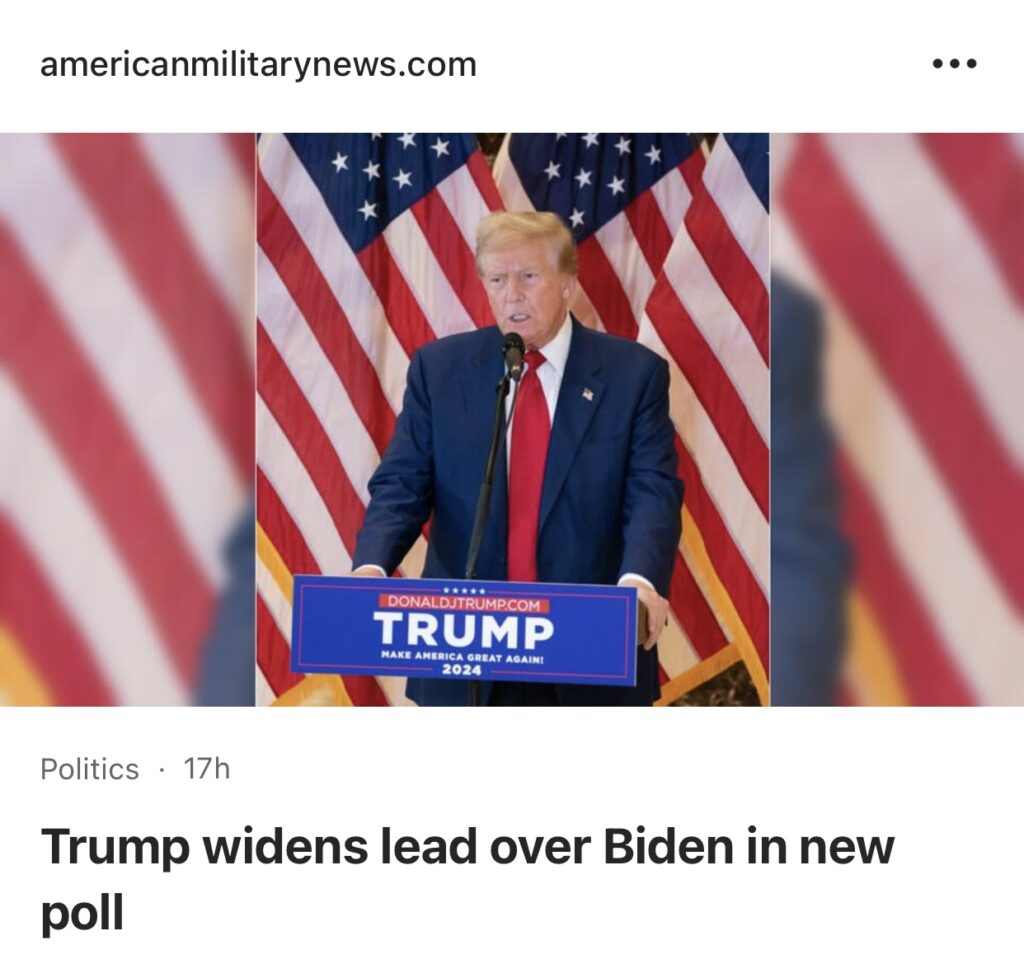 9。据美国军事新闻报道,一项针对全国选民的新民意调查显示,上周在佐治亚州亚特兰大举行的第一场总统辩论后,前总统唐纳德·特朗普对总统乔·拜登的领先优势有所扩大。这项民调是在拜登灾难性的辩论表现之后进行的,显示前总统在正面竞争中以 48% 比 42% 领先拜登。