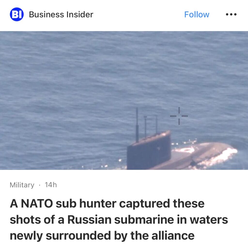 6。据Business Insider报道,一名北约潜艇猎手,拍摄到被北约联盟新包围的一艘俄罗斯潜艇的照片。北约海事司令部周三在 X 和其他社交媒体平台上分享了这些照片,并指出这艘俄罗斯潜艇是由葡萄牙 P-3 猎户座海上巡逻机拍摄的,这是洛克希德·马丁公司制造的反潜平台。