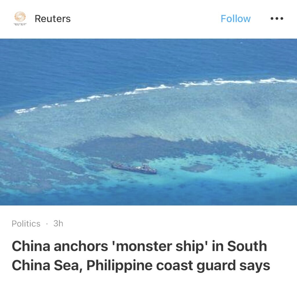 5。据马尼拉路透社报道,菲律宾海岸警卫队(PCG)周六表示,中国最大的海岸警卫队船只已停泊在马尼拉南中国海的专属经济区(EEZ)。