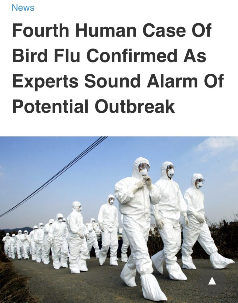 3。据Iinterview报道,确认第四例人感染禽流感病例,专家敲响了潜在爆发的警报。最新的患者是一名科罗拉多州奶牛场工人,他接触过 H5N1 禽流感病毒检测呈阳性的奶牛。该工人因接触受感染的牛而受到监控,并向州卫生当局报告了症状。