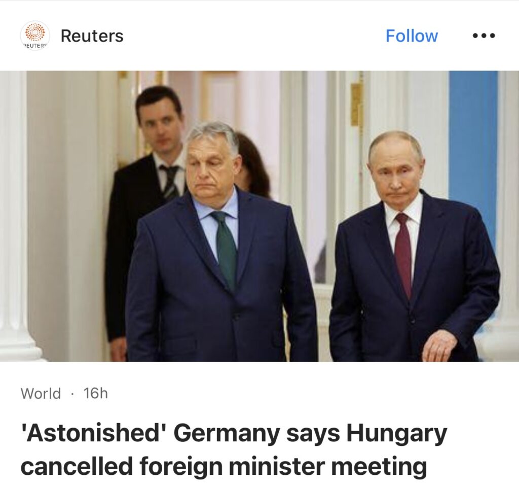 11。据法兰克福路透社报道,德国外交部官员周五表示,匈牙利取消了周一在布达佩斯与德国外长和匈牙利外长举行的会议。德国外交部表示,匈牙利总理欧尔班·维克托周五会见俄罗斯总统普京后,德国外交部表示“感到惊讶”,并表示需要进行“严肃和诚实”的讨论。