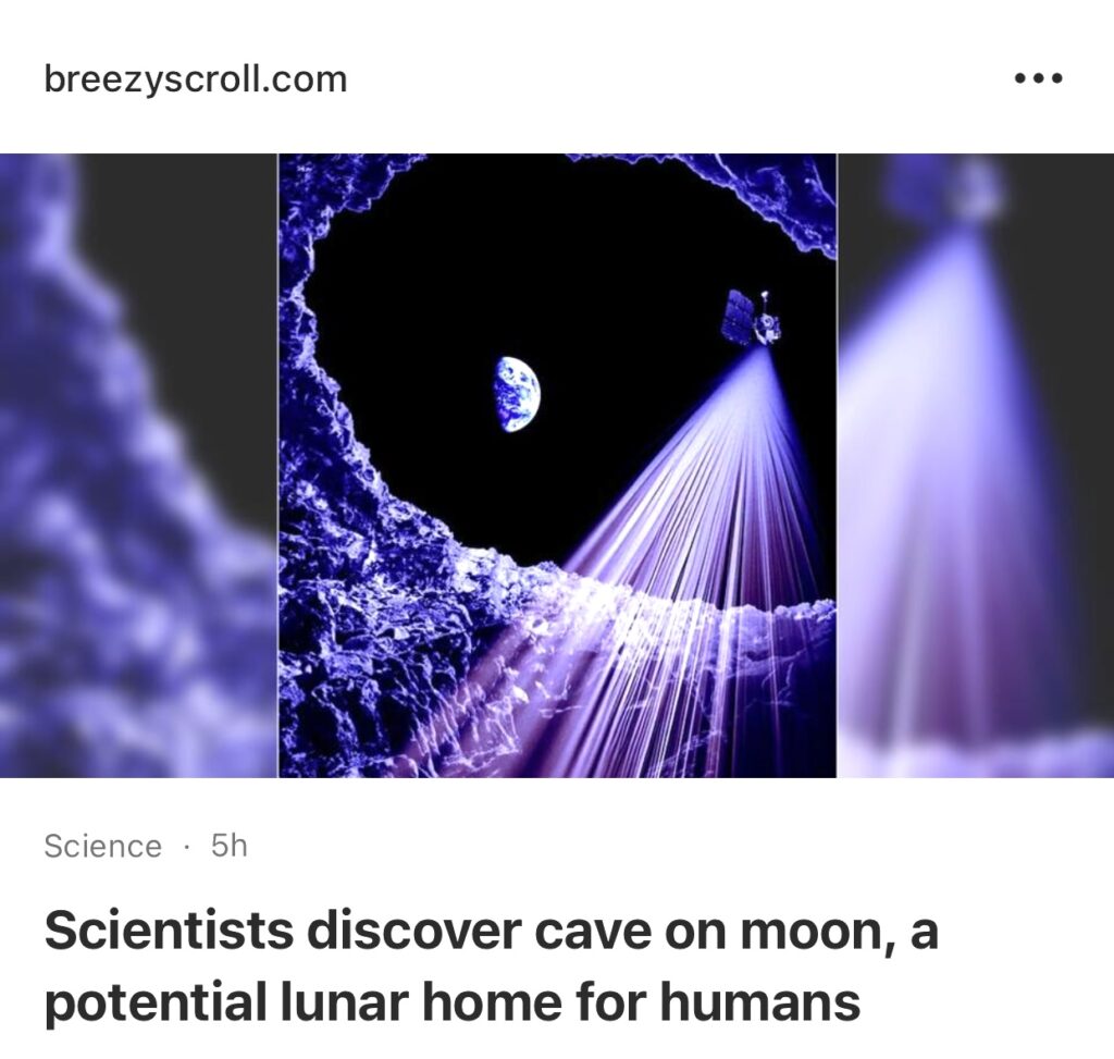 7。据Breezyscroll报道,科学家在月球上发现洞穴,可能成为人类的月球家园。科学家首次在月球上发现了一个洞穴,估计至少有100米深。这一发现可能对于在月球表面建立永久性人类基地至关重要,从而提供免受辐射、极端温度和太空天气影响的保护。研究人员认为,这个洞穴只是隐藏在“未被发现的地下世界”中的数百个洞穴之一。