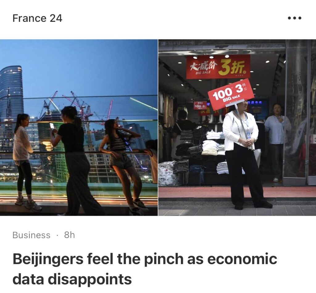 9。据北京法新社报道,北京人周一告诉法新社,随着经济放缓,他们感受到了压力,网购、不外出就餐,以及数十年两位数增长的普遍感觉已成为过去。
