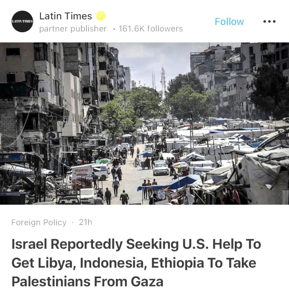 15。据Latin Times报道,以色列寻求美国帮助利比亚、印度尼西亚和埃塞俄比亚从加沙地带撤走巴勒斯坦人。