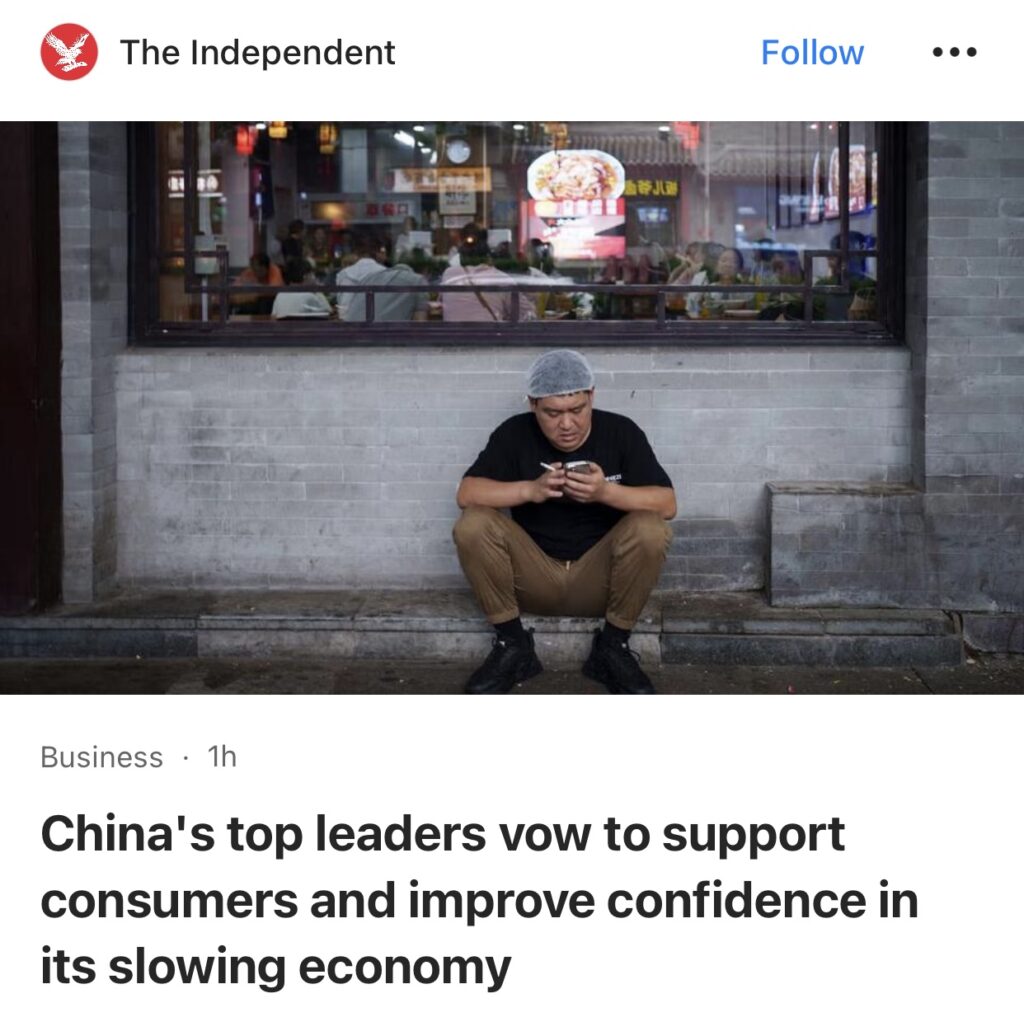 15。据The Independent报道,中国最高领导人誓言支持消费者,并增强对放缓的经济的信心。