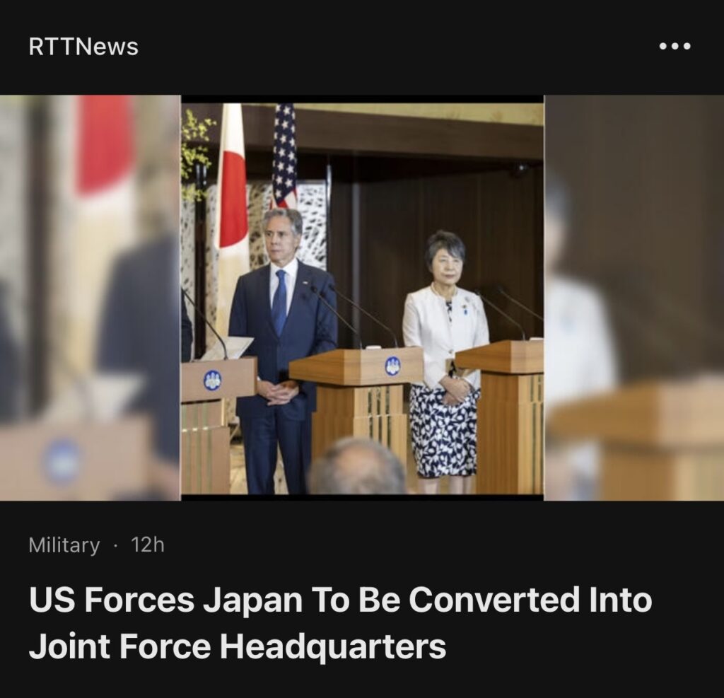 6。据RTT News 报道,美国已宣布计划分阶段将驻日美军转变为联合部队总部,向美国印太司令部司令汇报。这是美国国防部长劳埃德·奥斯汀在东京举行的二加二部长级会议结束后宣布的。