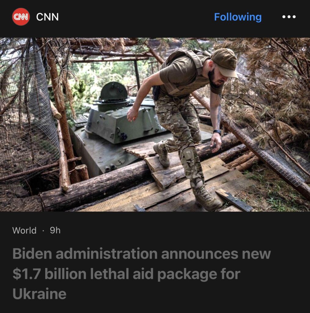 4。据CNN 报道,拜登政府周一宣布向乌克兰提供总额约17亿美元的新致命援助计划,主要包括美国此前向乌克兰提供的导弹,火炮和防空系统的弹药。