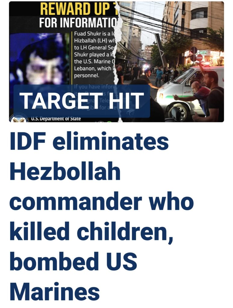 11。据FoxNews 报道,以色列国防军 (IDF) 周二宣布真主党指挥官福阿德·舒克尔 (Fuad Shukr) 死亡,他是周末对以色列无人机袭击的幕后黑手,其造成 12 名儿童和青少年死亡。