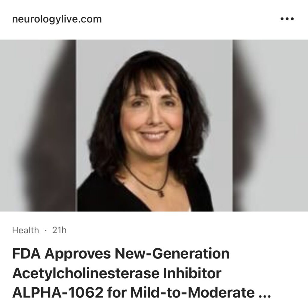 14。据Neurology Live 报道,FDA 批准新一代乙酰胆碱酯酶抑制剂 ALPHA-1062 ,用于治疗轻至中度阿尔茨海默病。ALPHA-1062 是一种缓释口服片剂配方,被认为是新一代 AChEI 抑制剂,预计胃肠道不良事件(AE) 极低。