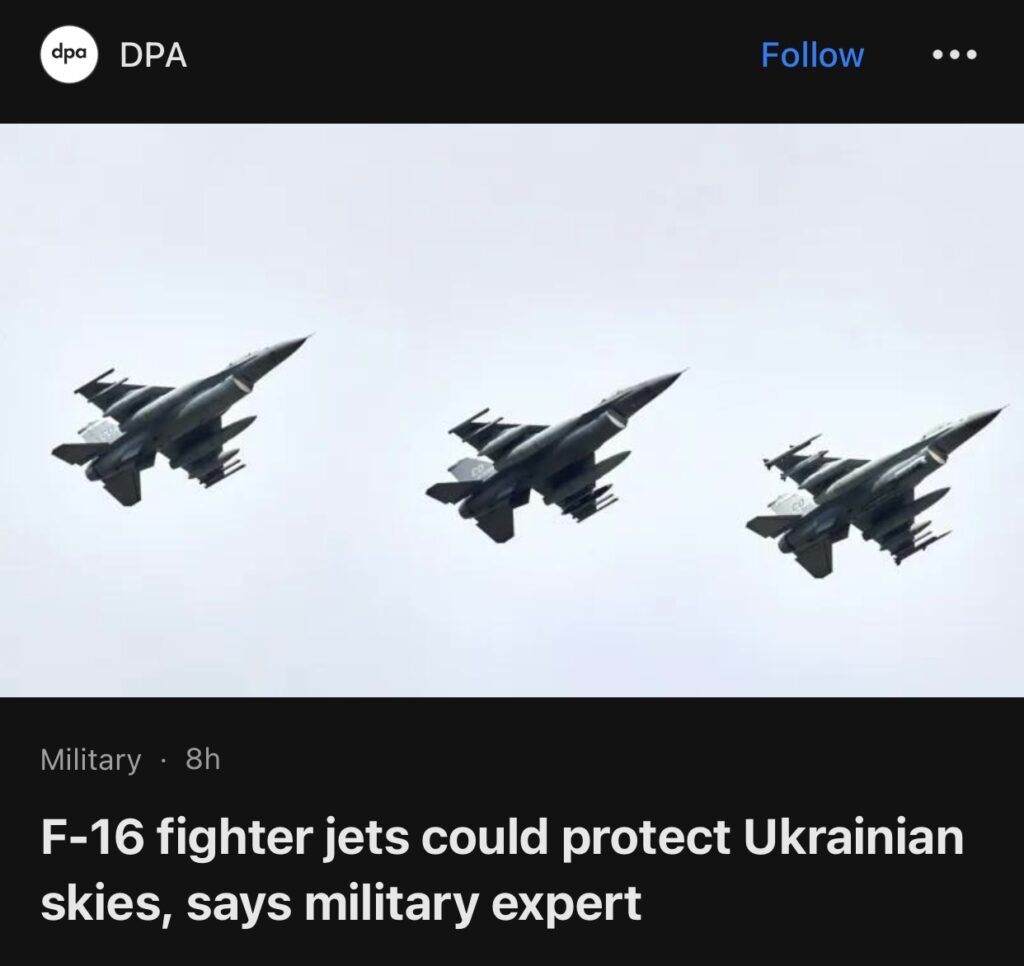 7。据DPA报道,乌克兰军事专家周一表示,即将交付乌克兰的美制 F-16 战斗机可能会为确保该国领空免受俄罗斯攻击做出重大贡献。航空专家阿纳托利·赫拉普钦斯基在乌克兰电视台表示,这些喷气式飞机为“基本空域保护提供了多种可能性”。