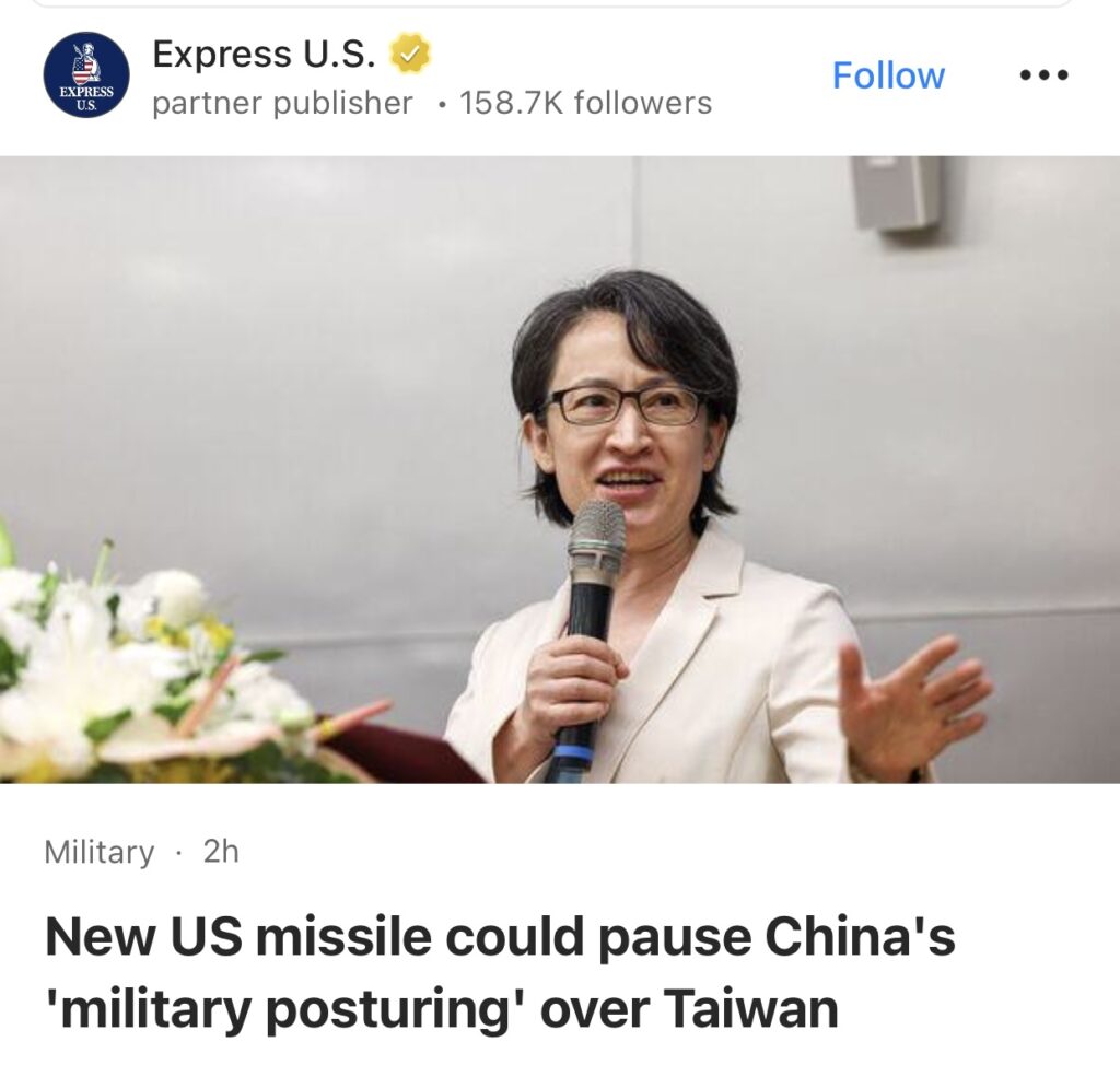 15。据Express U.S报道,美国新型导弹或将暂停中国对台湾的“军事姿态”。一枚价值 260 万英镑的突破性导弹似乎已经准备好通过对中国海军进行毁灭性打击的能力来改变针对中国的力量平衡。