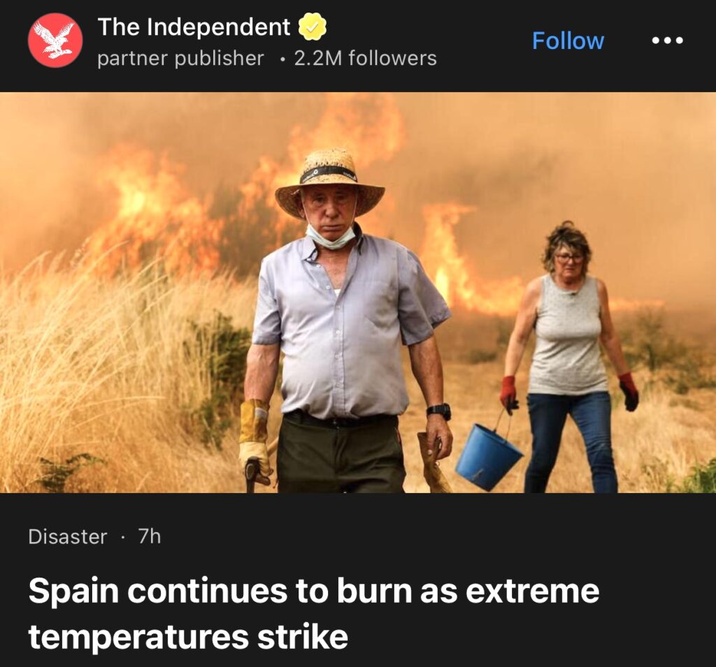 7。据The Independent报道,西班牙将增派 500 名士兵,使士兵总数超过 1,900 人,以扑灭大面积的野火,特别是在发生 12 起重大火灾的西北部加利西亚地区。
