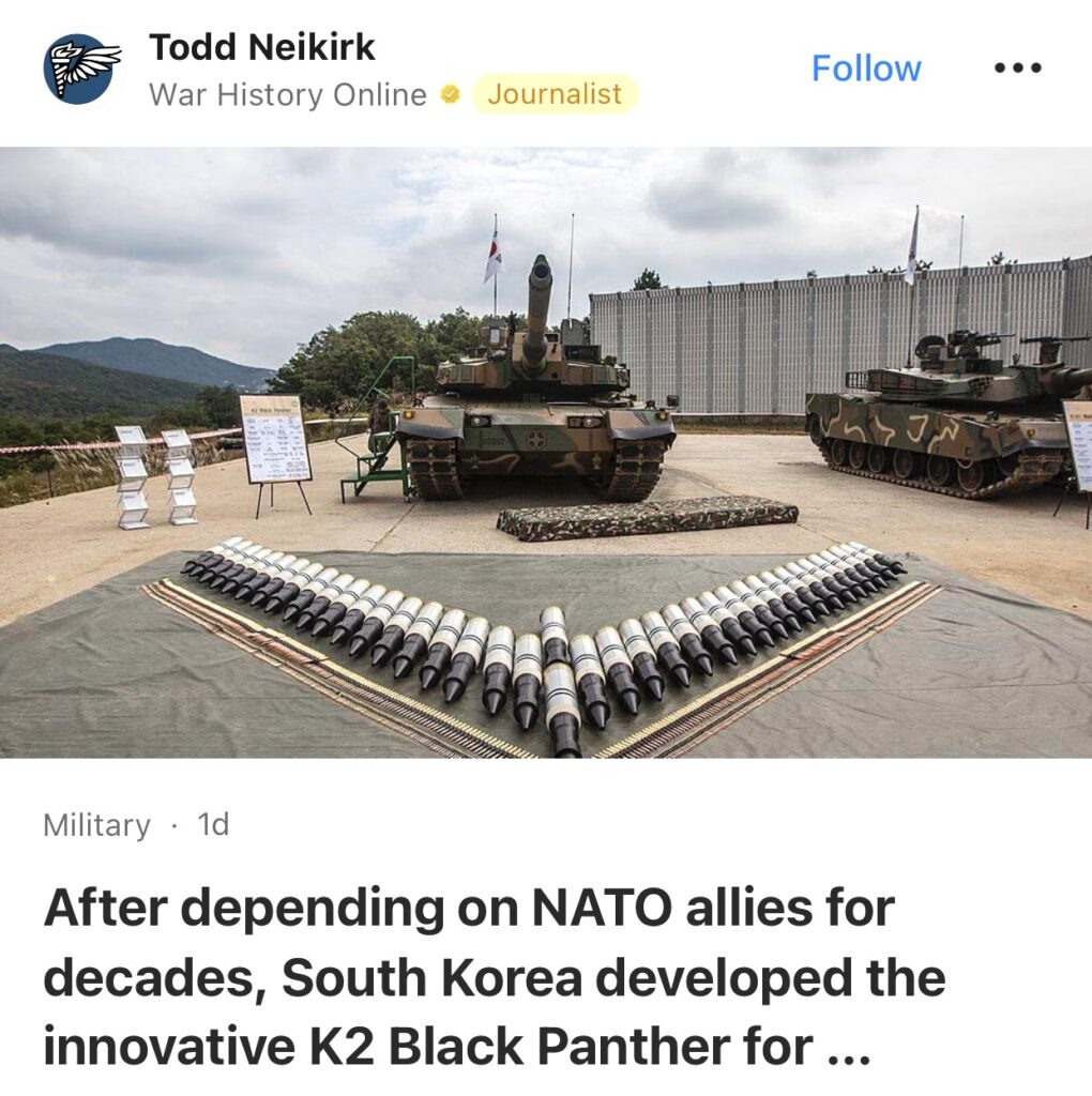 1。据War History Online报道,在依赖北约盟友数十年后,韩国开发了创新型 K2 黑豹,以防御来自朝鲜的持续威胁。
