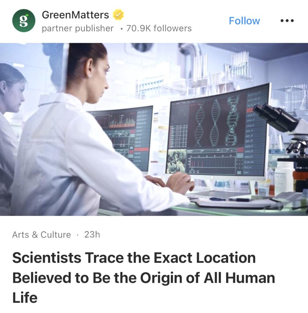 3。据GreenMatters报道,科学家追踪了人类生命起源的确切位置。