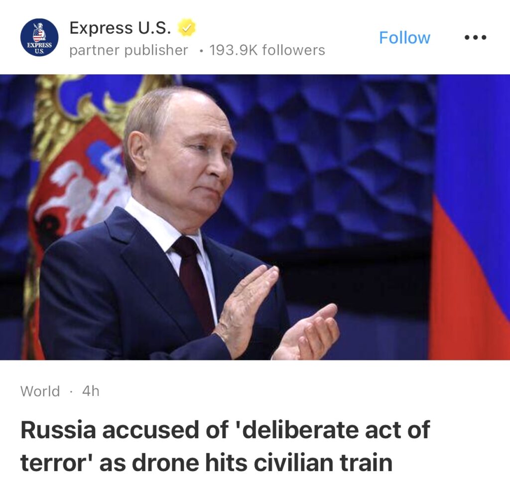 9。据Express U.S.报道,无人机袭击民用列车,俄罗斯被指控“蓄意恐怖行为”。