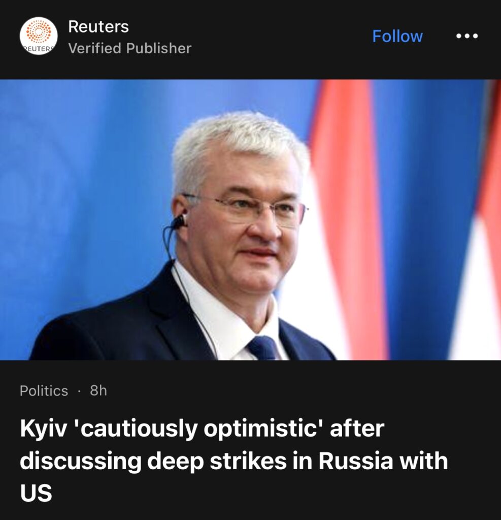 7。布鲁塞尔(路透社) – 乌克兰外交部长安德里·西比哈周三表示,在与美国国务卿安东尼·布林肯讨论对俄罗斯进行深度打击以及欧洲-大西洋一体化的可能性后,他持“谨慎乐观”态度。