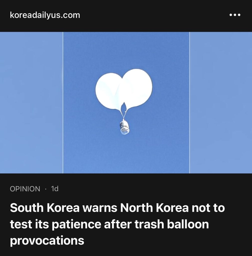 15。据TheKoreanDaily 报道,韩国警告朝鲜不要在垃圾气球挑衅后,考验其耐心。