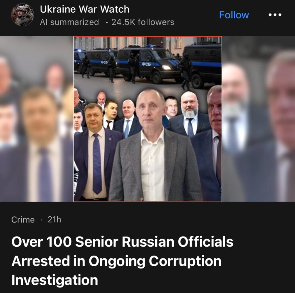 10。据Ukraine War Watch报道,超过100名俄罗斯高级官员在持续进行的腐败调查中被捕。