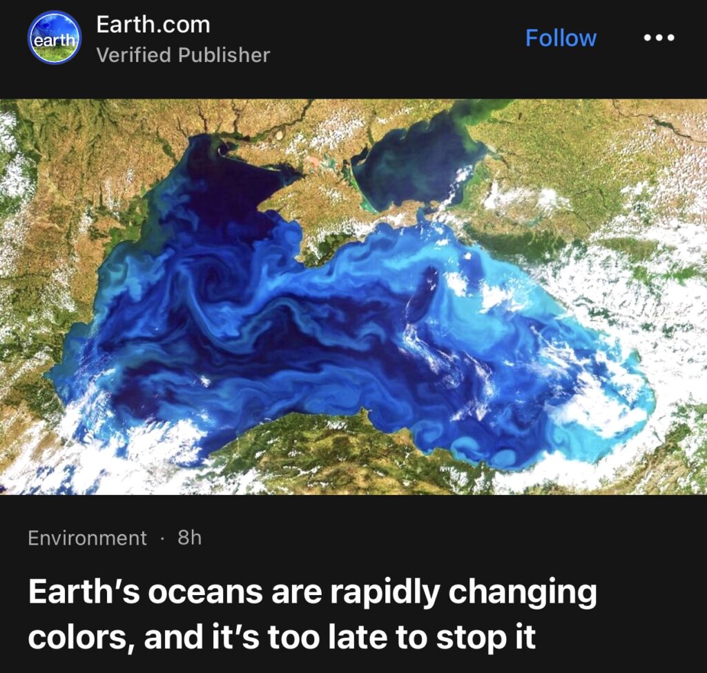 4。据Earth.com 报道,地球海洋的颜色正在迅速改变,想要阻止它已为时太晚。