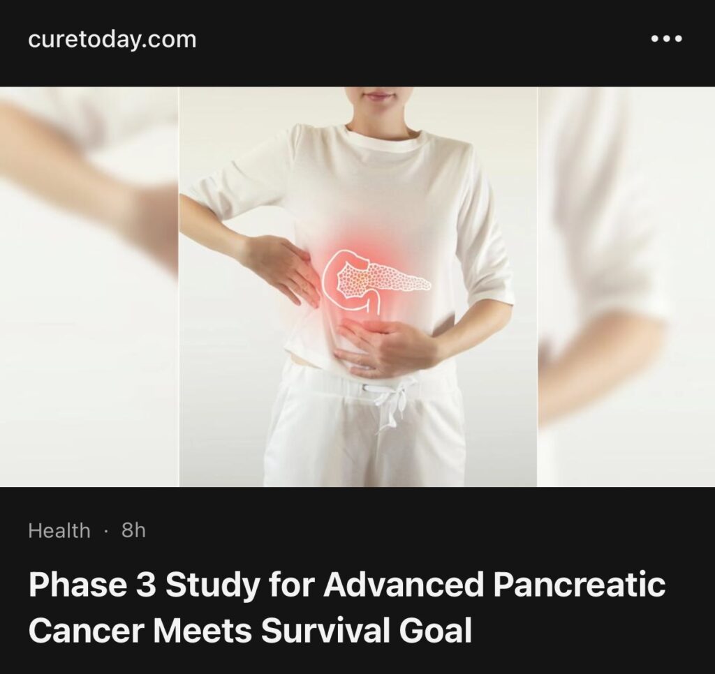 3。据Cure 报道,晚期胰腺癌的 3 期研究达到了生存目标。一项 3 期研究评估了不可切除的局部晚期胰腺癌患者的一线治疗方法,达到了总体生存 (OS) 的主要目标。