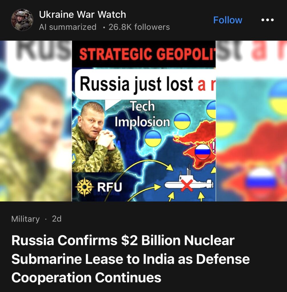 14。据Ukraine War Watch报道,俄罗斯确认向印度租赁价值20亿美元的核潜艇,双方防务合作持续进行。