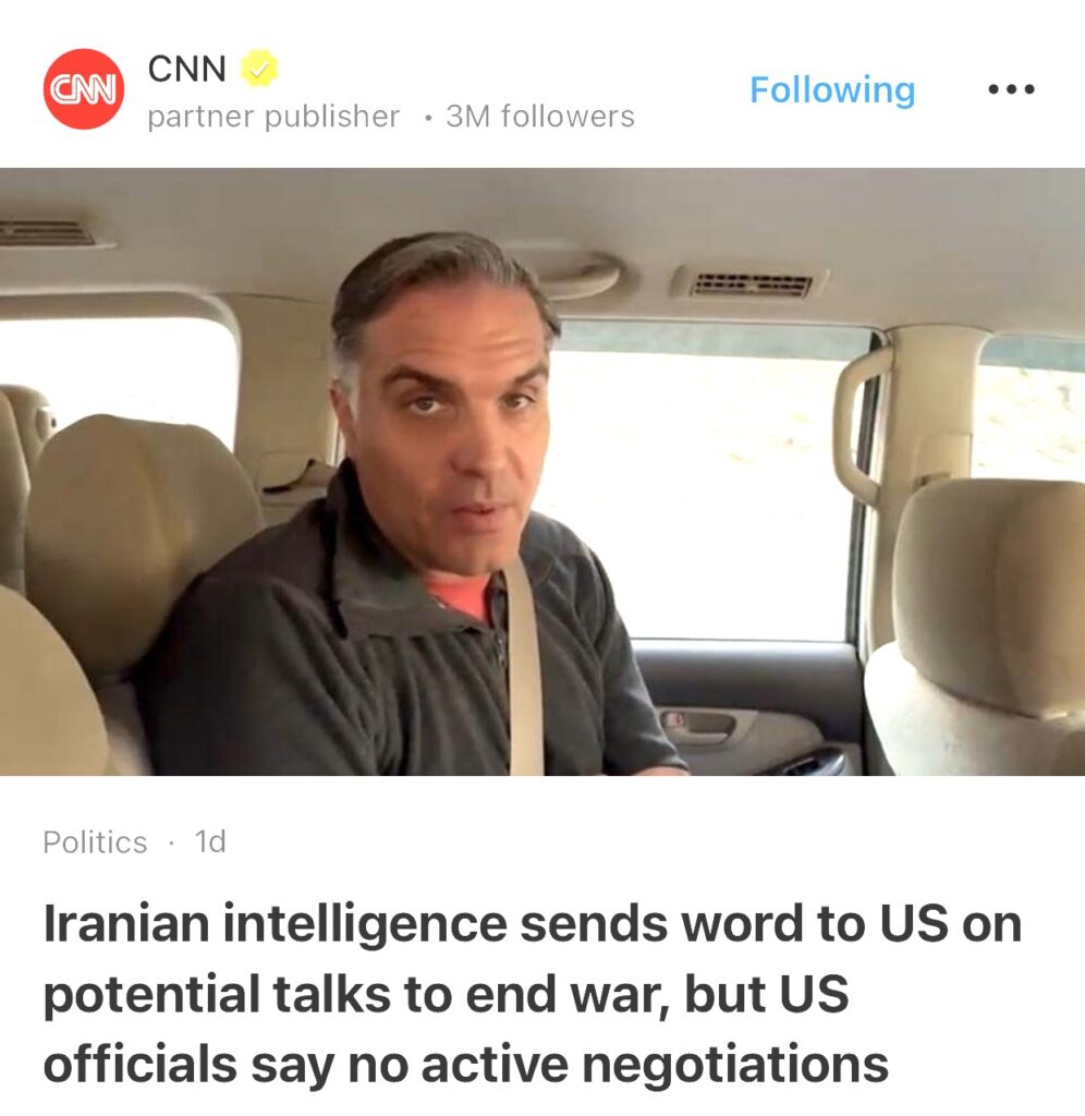 14。据CNN报道,伊朗情报部门向美国透露了可能举行结束战争的谈判的消息,但美国官员表示目前没有进行任何谈判。