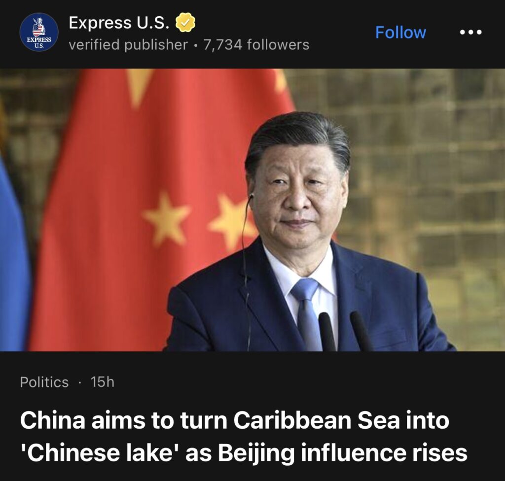 10。据Express U.S.报道,随着北京影响力的增强,中国计划将加勒比海变成“中国湖”。