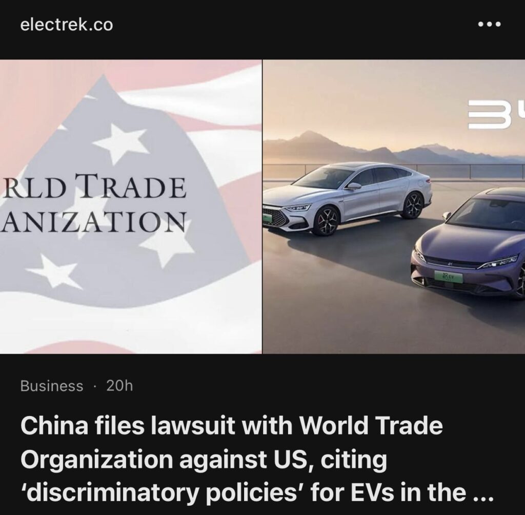 13。据Electrek报道,中国向世界贸易组织提起针对美国的诉讼,理由是IRA对电动汽车实行“歧视性政策”。