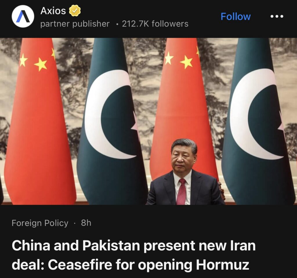 1。据Axios报道,中巴提出伊朗新协议:以停火换霍尔木兹海峡开放。