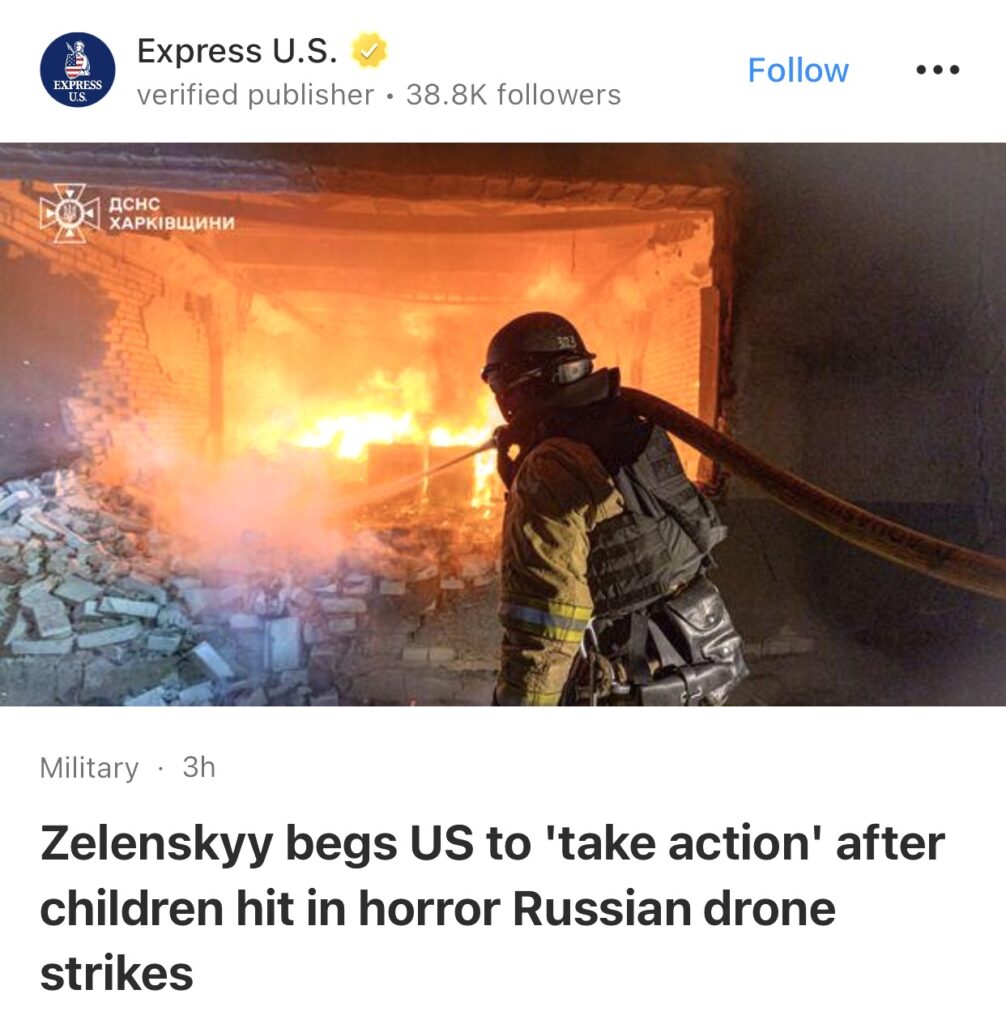 5。据Express U.S.报道,在俄罗斯无人机袭击中,三名儿童受伤,泽连斯基恳求美国“采取行动”。