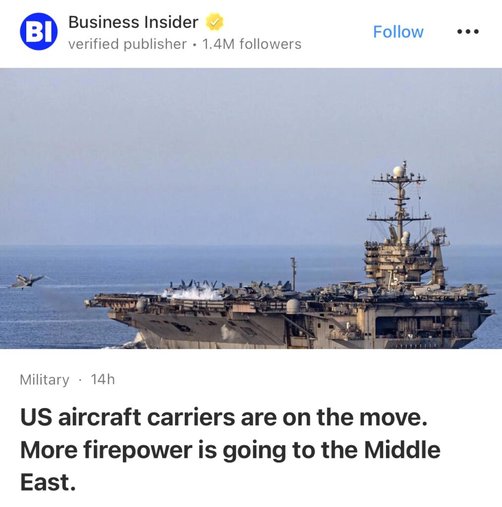 4。据Business Insider报道,美国航空母舰正在行动,更多火力将派往中东。