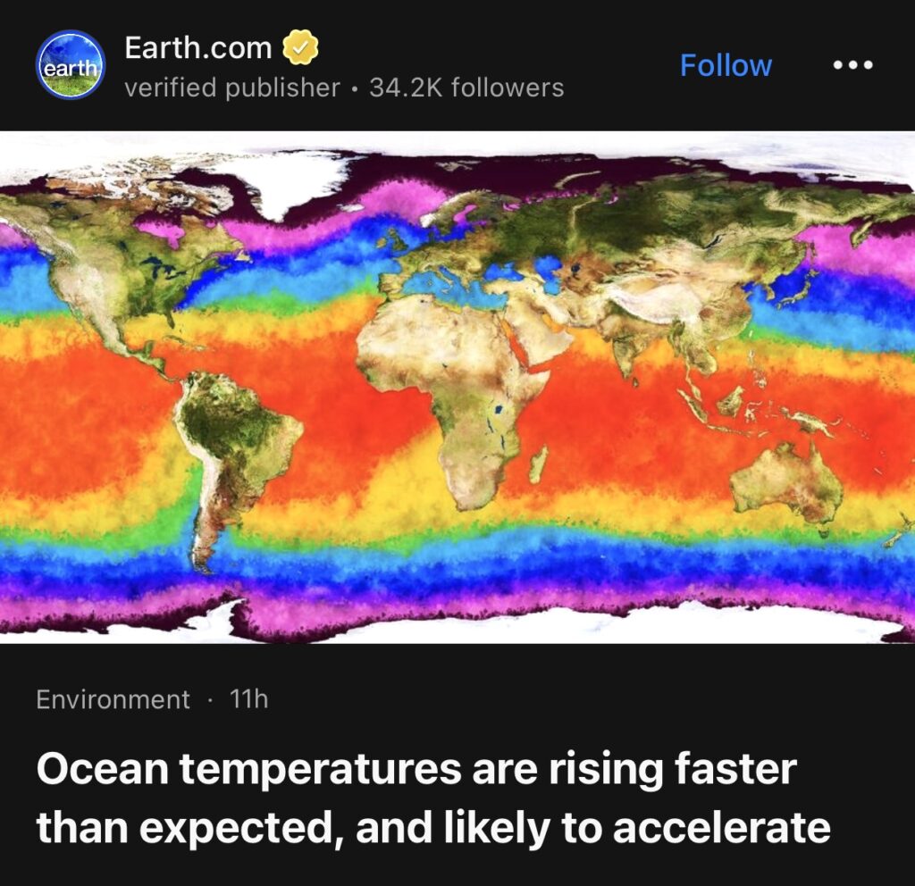 4。据Earth.com报道,自 20 世纪 80 年代初以来一直环绕地球运行的卫星仪器现在描绘出了我们海洋温度不断升高的严峻景象:温度不仅在上升,而且每十年上升的速度都在加快。