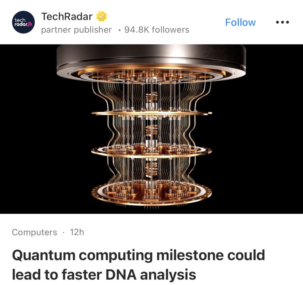 10。据TechRadar 周一报道,量子计算里程碑有望加速DNA分析。