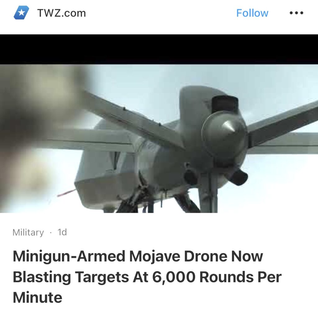 8。据TWZ.com报道,配备迷你机枪的莫哈韦无人机,现在能够以每分钟 6,000 发子弹的速度打击目标。