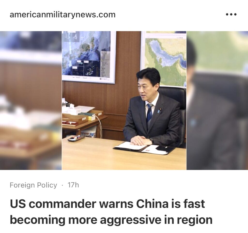 3。据美国军事新闻报道,即将卸任的美国印太司令部司令表示,中国在亚洲各地的言论和行动迅速变得更加咄咄逼人。就在国务卿托尼·布林肯前往该国进行高风险谈判之前,北京向华盛顿加大了压力。