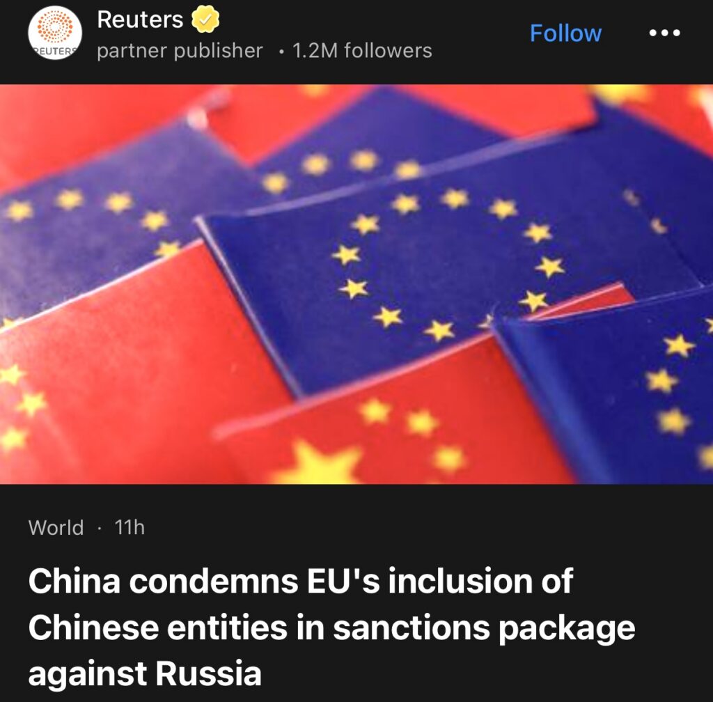 2。北京,4月25日(路透社)——中国商务部周六对欧盟将中国实体列入其针对俄罗斯的第20轮制裁名单表示“坚决反对”,并要求立即将其从该名单中移除。