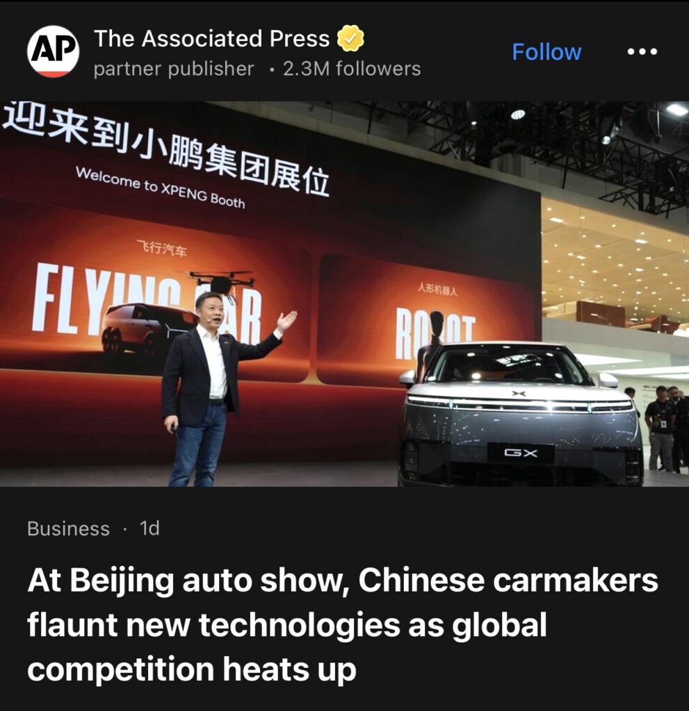 8。北京(美联社)——随着中国顶级汽车制造商在海外市场与全球竞争对手展开较量,它们正齐聚北京,展示从智能驾驶到超快充电等领域的最新车型与技术。