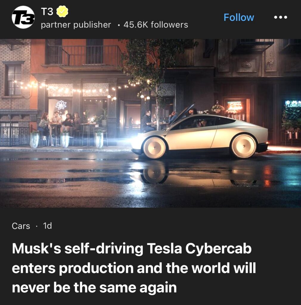 6。据Quick Summary 周五报道,马斯克的自动驾驶特斯拉 Cybercab 投入生产,世界将从此彻底改变。