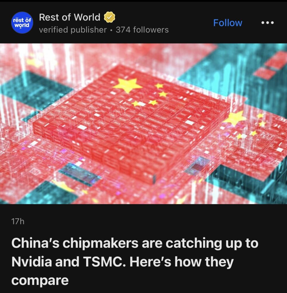 1。据Rest of World报道,中国芯片制造商正在追赶英伟达和台积电。多年来美国对芯片的管制促使中国政府向国内半导体供应链投资数十亿美元,而半导体对于人工智能的发展至关重要。