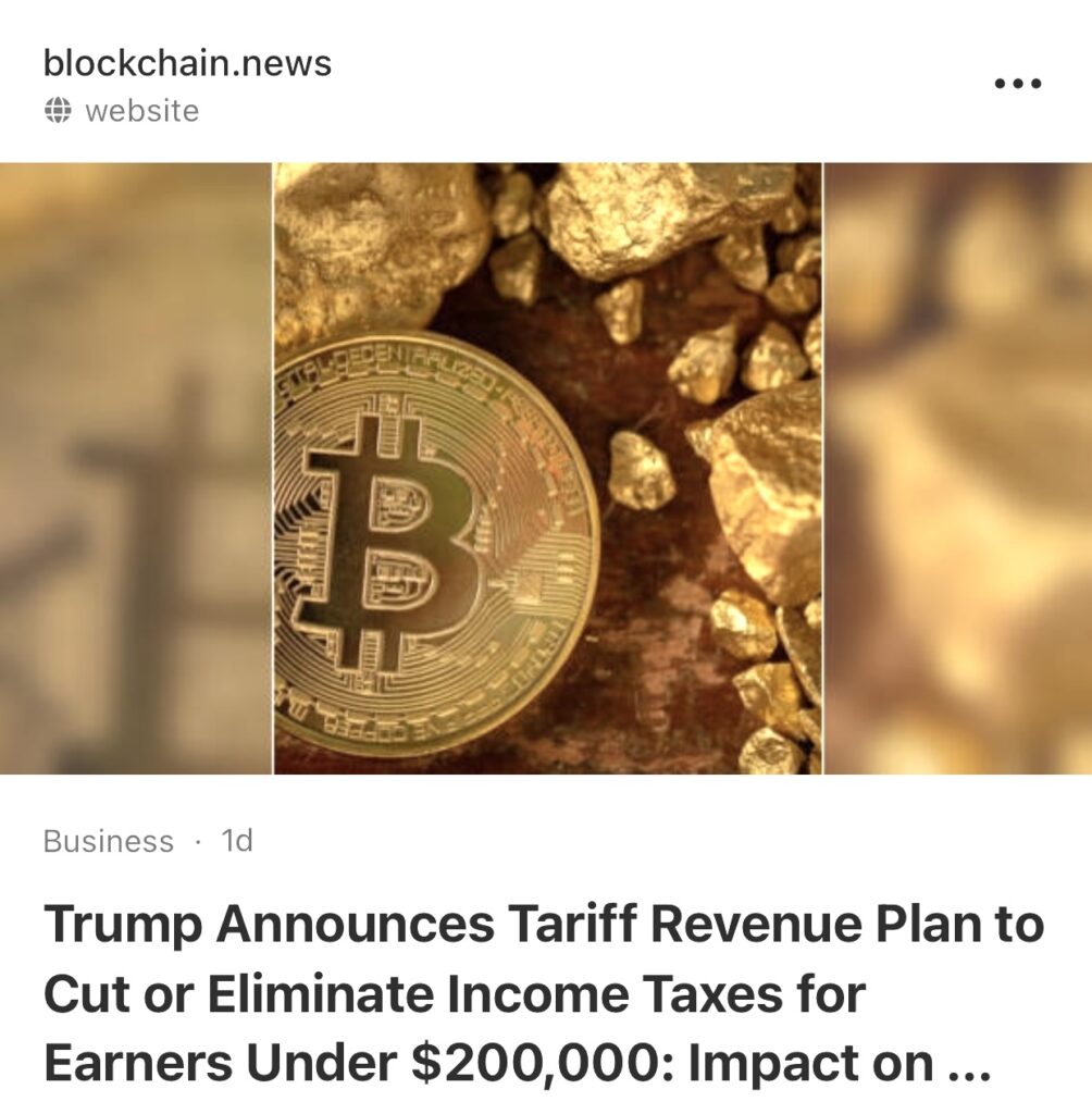 4。据Blockchain.News 报道,特朗普宣布关税收入计划,削减或取消20万美元以下收入者的所得税。