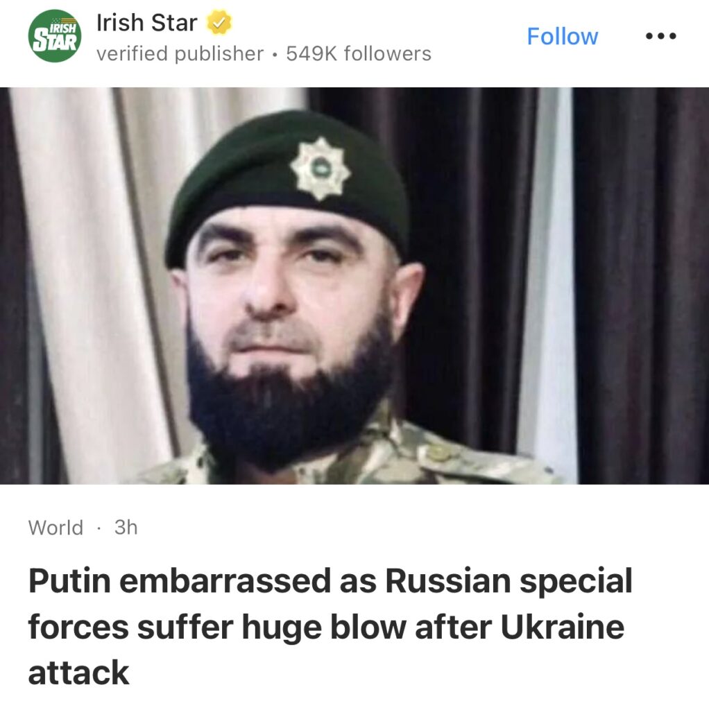 11。据Irish Star报道,乌克兰袭击后俄罗斯特种部队遭受重创,普京尴尬不已。