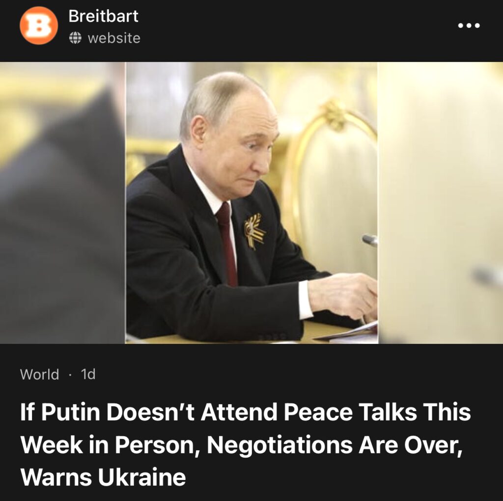 10。据BREITBART报道 ,乌克兰称如果普京不亲自出席会谈,谈判就结束。