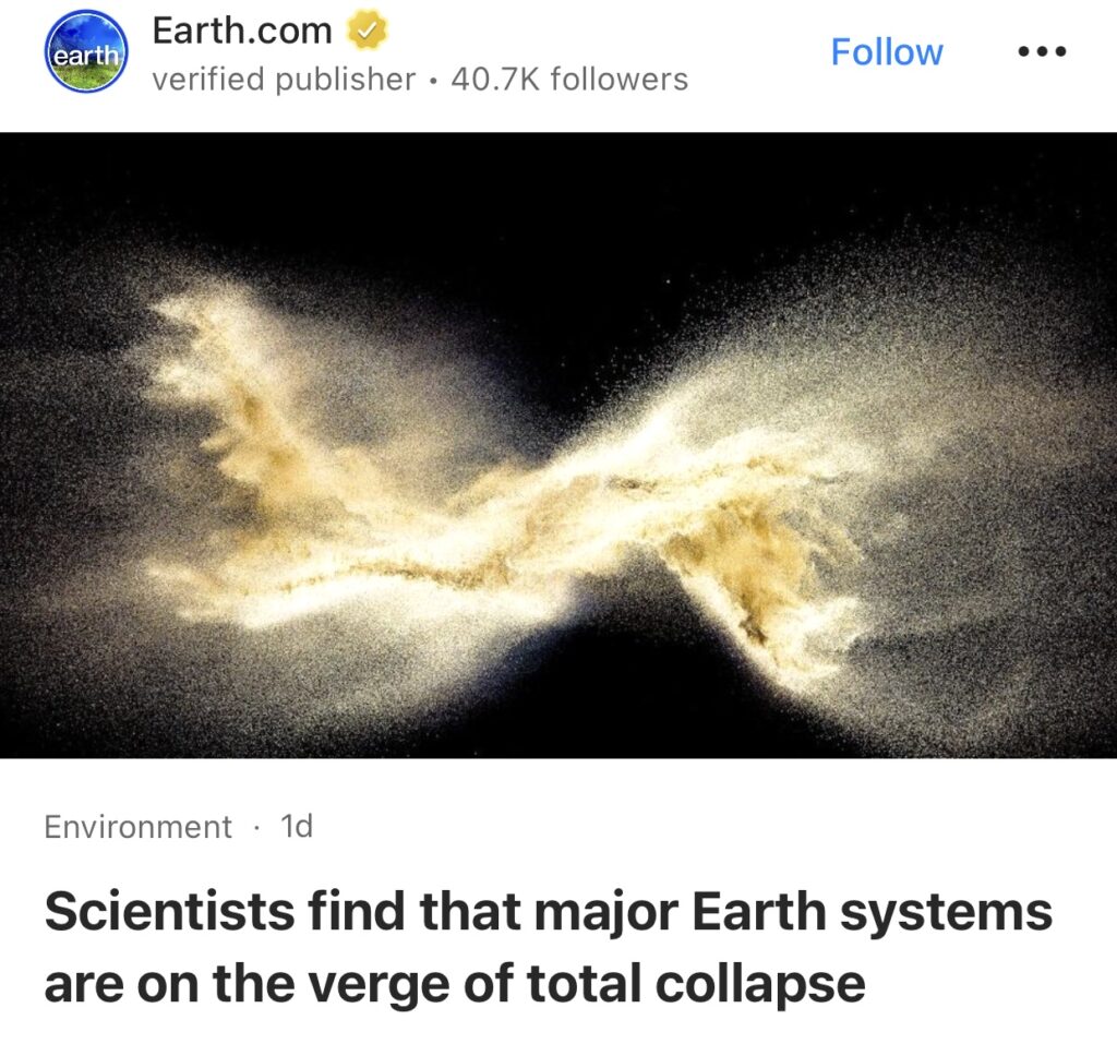 7。据Earth.com报道,科学家发现地球主要系统正处于全面崩溃的边缘。