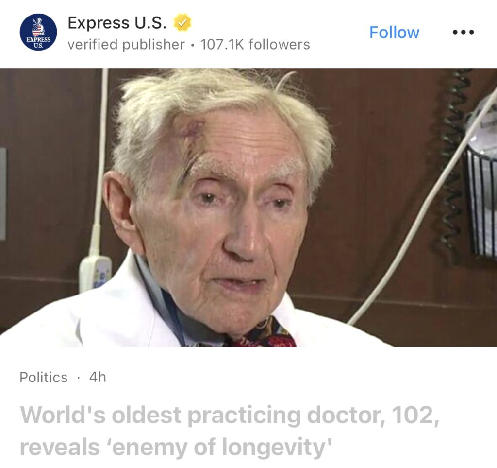 8。世界上年龄最大的执业医生(102岁)揭示“长寿的敌人”。他说:“我认为,退休是长寿的敌人,”塔克告诉《今日》的艾尔·罗克。